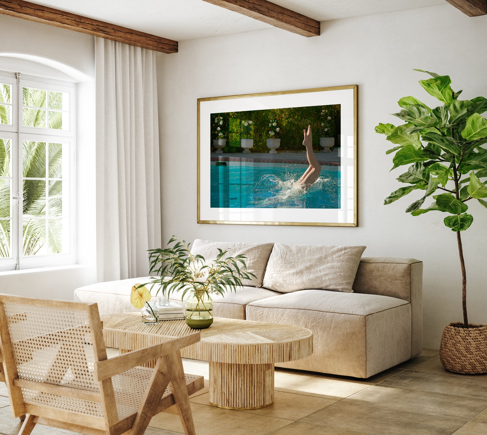 The framed artwork will be shipped and delivered fully prepared for effortless hanging.