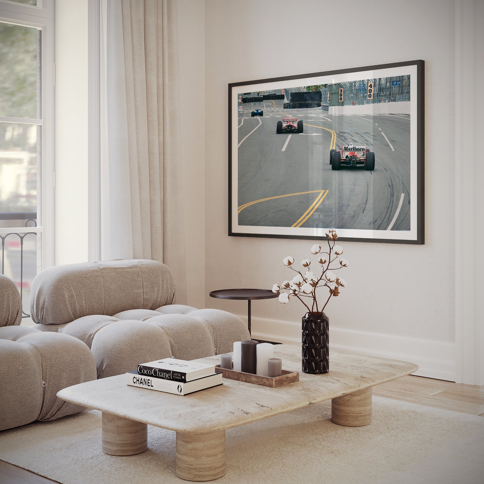 All frames are custom-made hardwood and are available in white, black and natural wood and come equipped with shatter-resistant, UV-protective artist-grade acrylic.