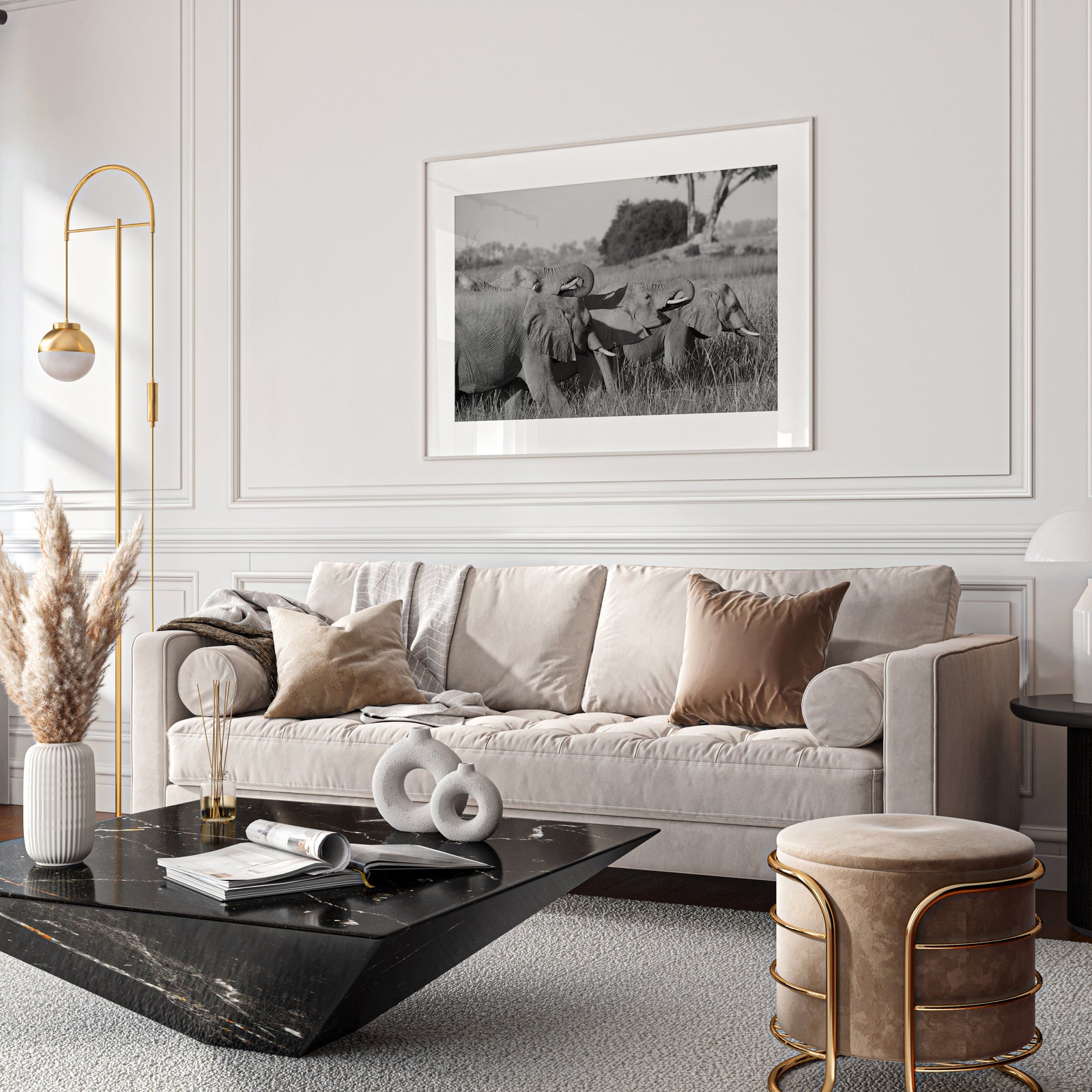 The framed artwork will be shipped and delivered fully prepared for effortless hanging.