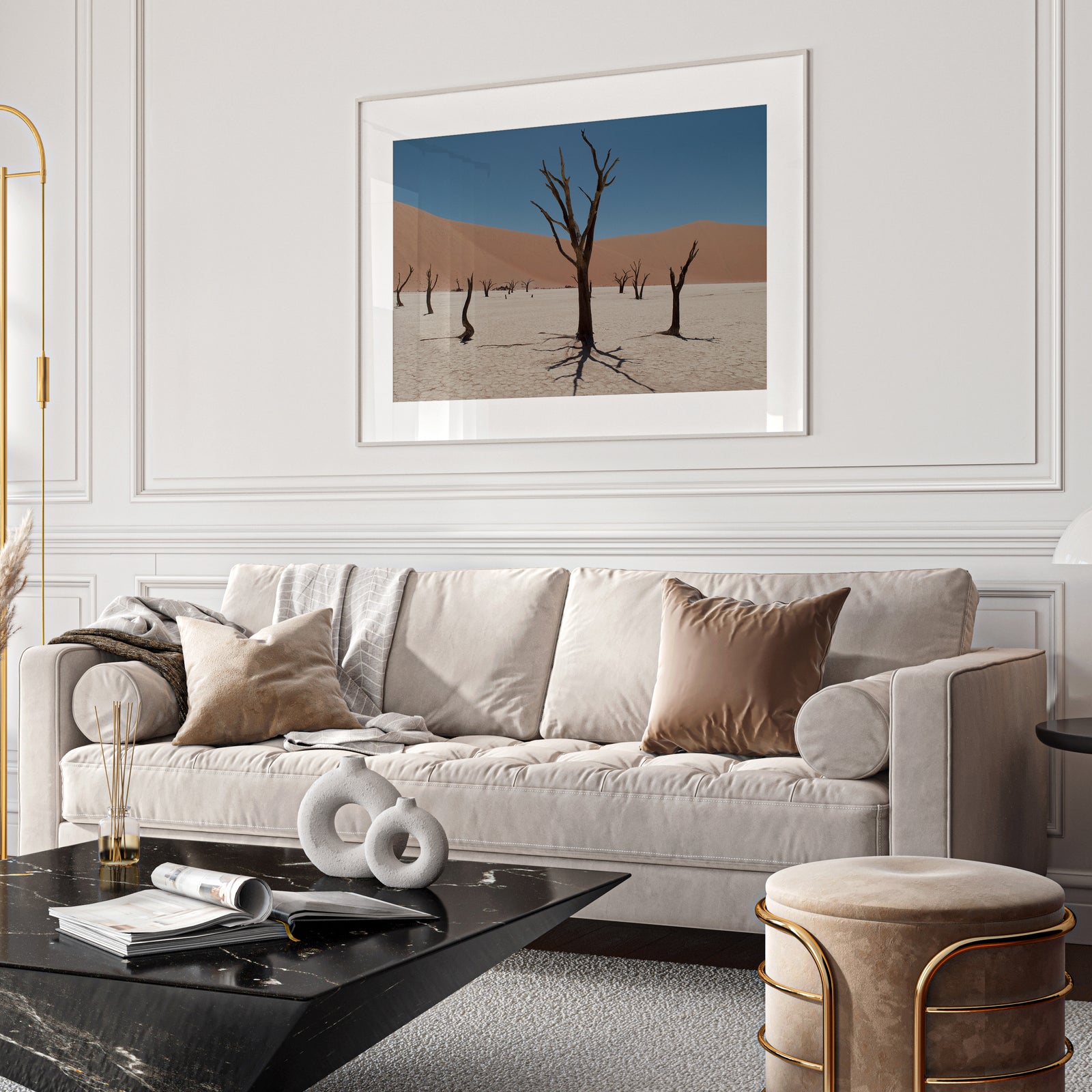 The framed artwork will be shipped and delivered fully prepared for effortless hanging.