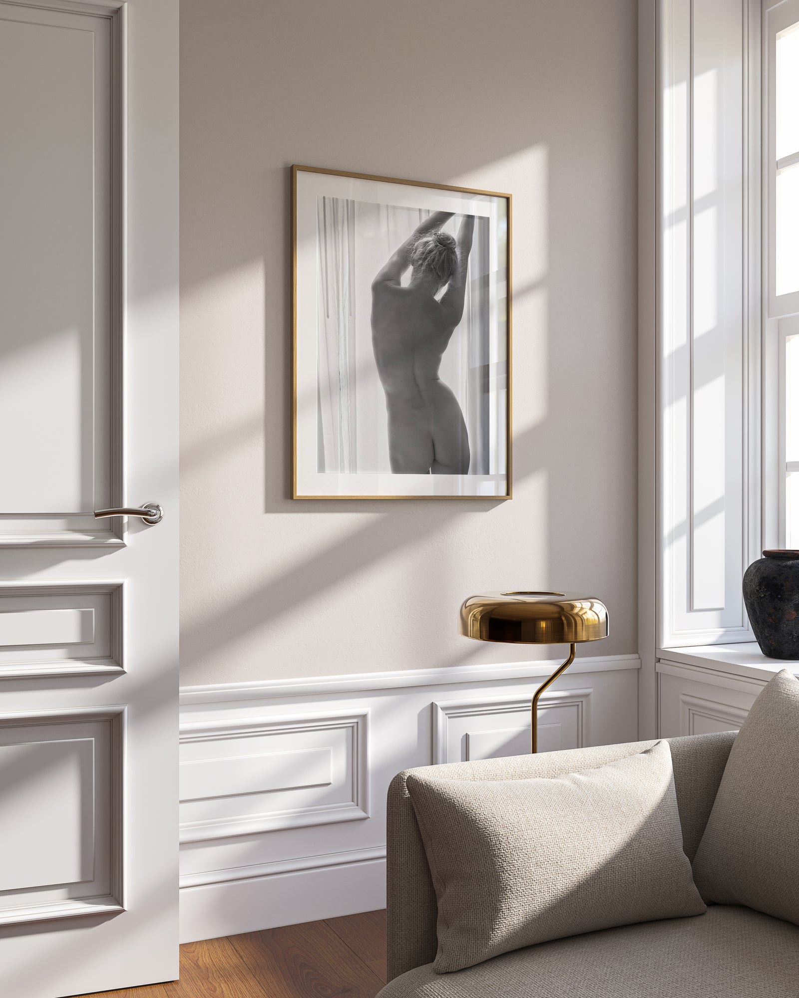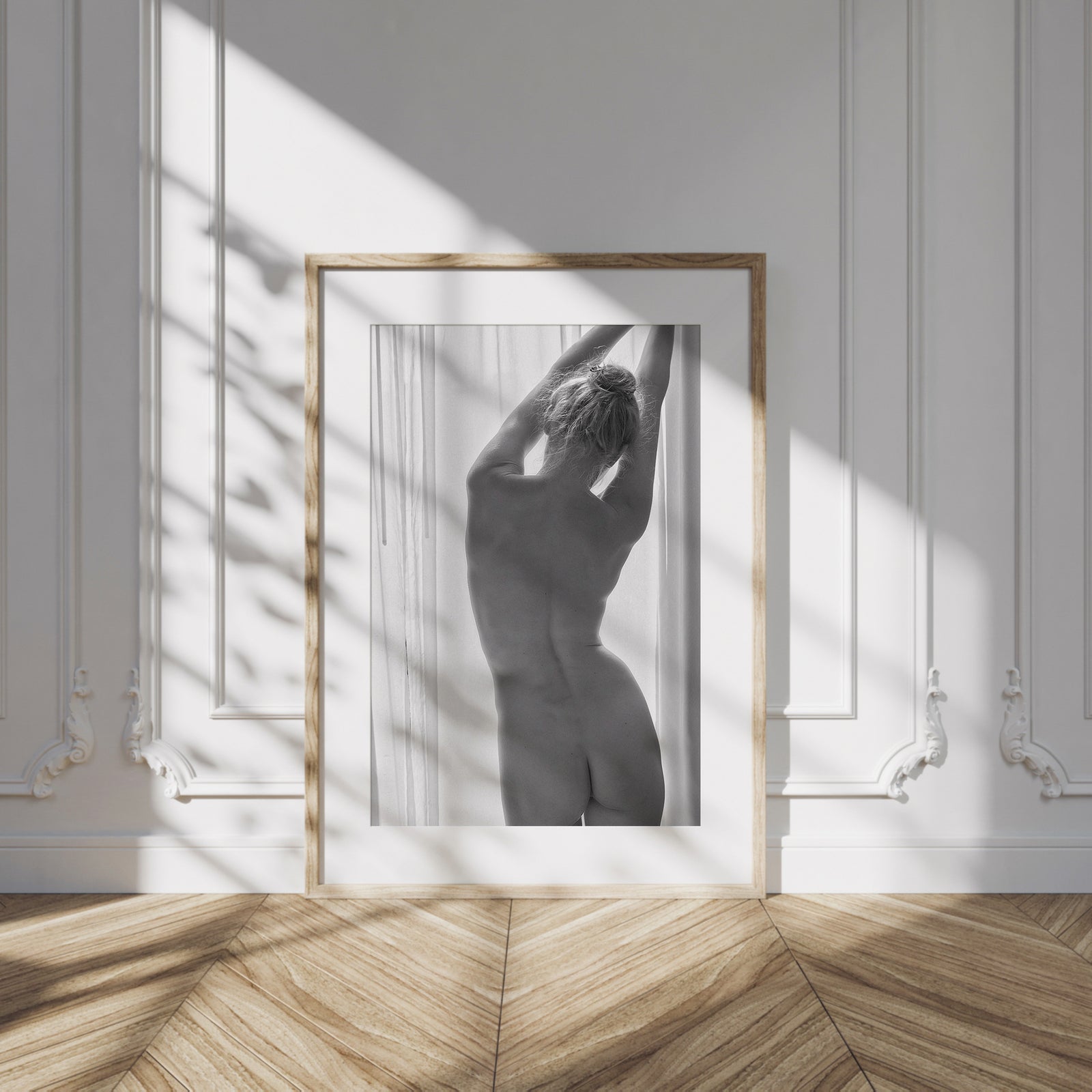 The framed artwork will be shipped and delivered fully prepared for effortless hanging.
